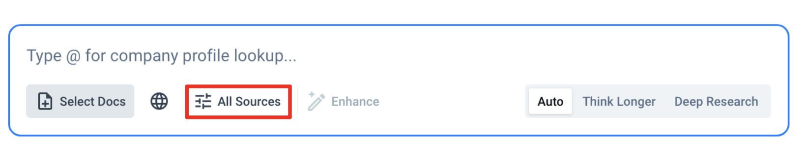 - Document Search & Company Profile: Click Sources (next to Overview)