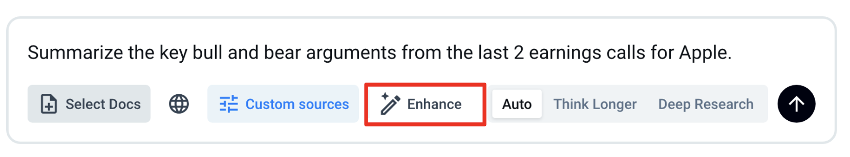 Note: Use the Enhance prompt to create more effective search prompts quickly, leading to more relevant results.