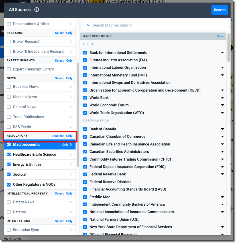 AlphaSense offer over 700 Regulatory & NGO sources that cover press releases, notifications, updates, and other publications by Regulatory bodies and Non-Government Organizations that impact macroeconomic or industry specific business operation.