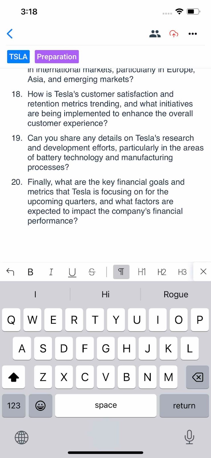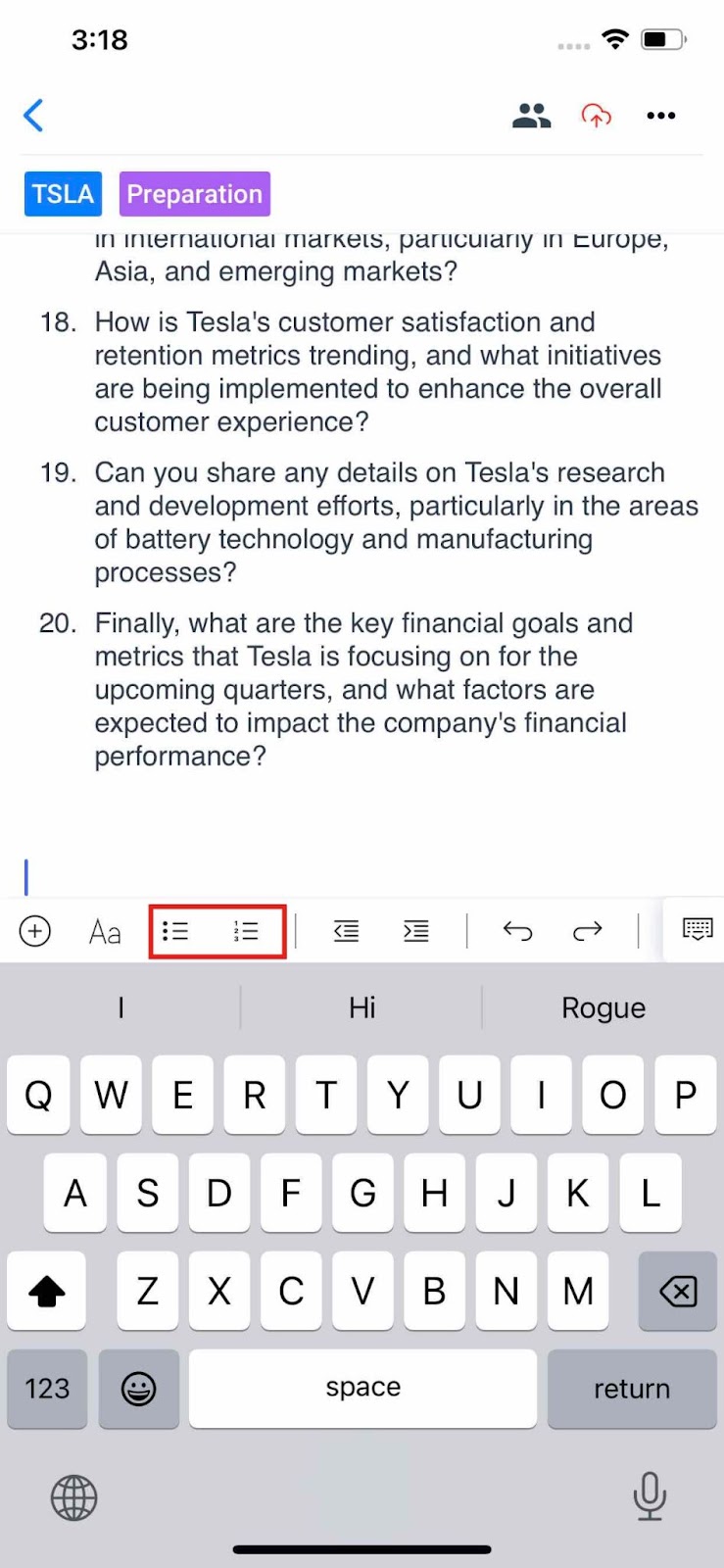 Notebook+ In the AlphaSense iOS app