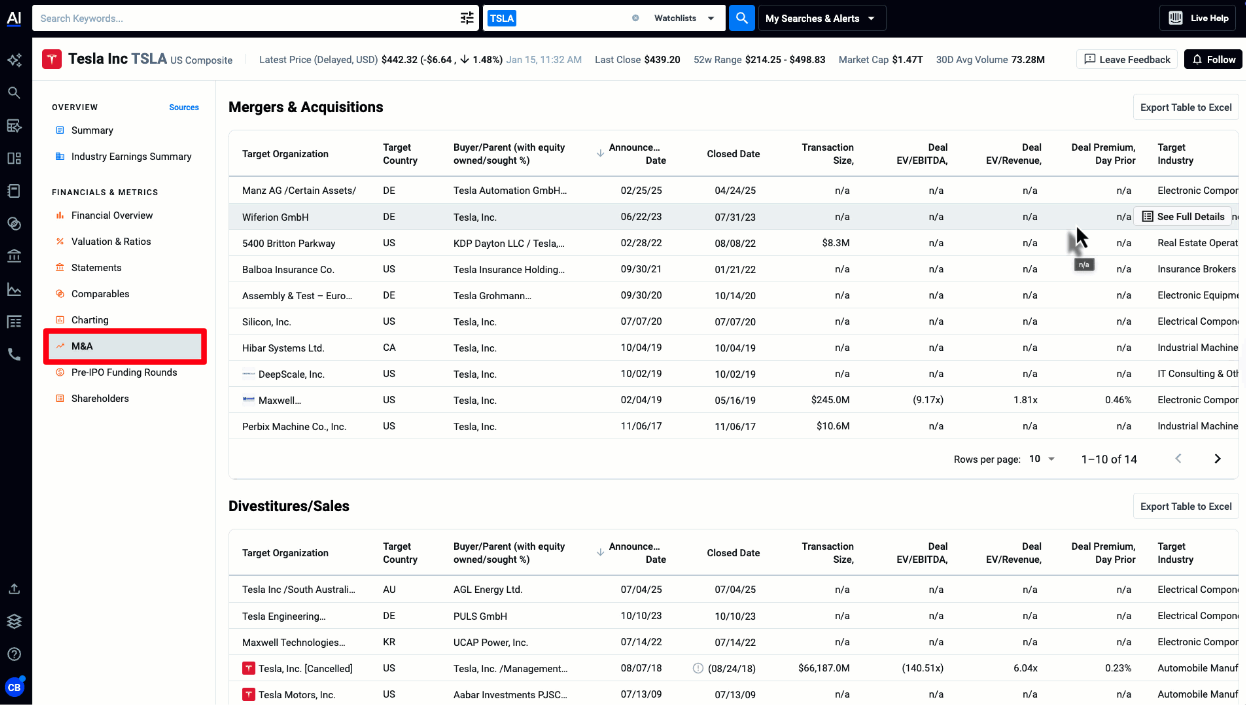 You can also screen for M&A and Funding rounds, continue reading below to learn more.