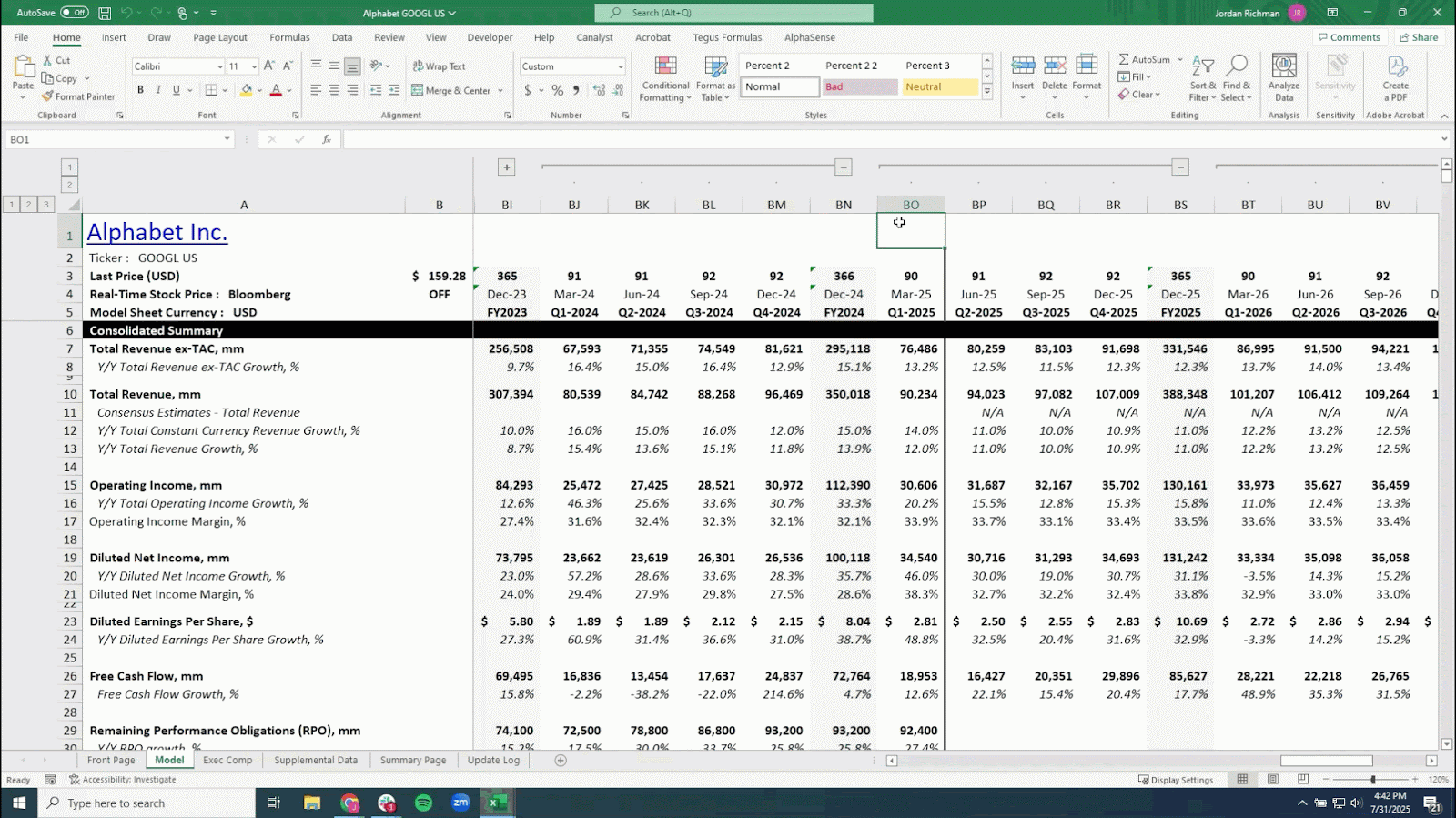 - Add your own CAGRs or notes in the first 20 columns after the last fiscal year column in the Model or