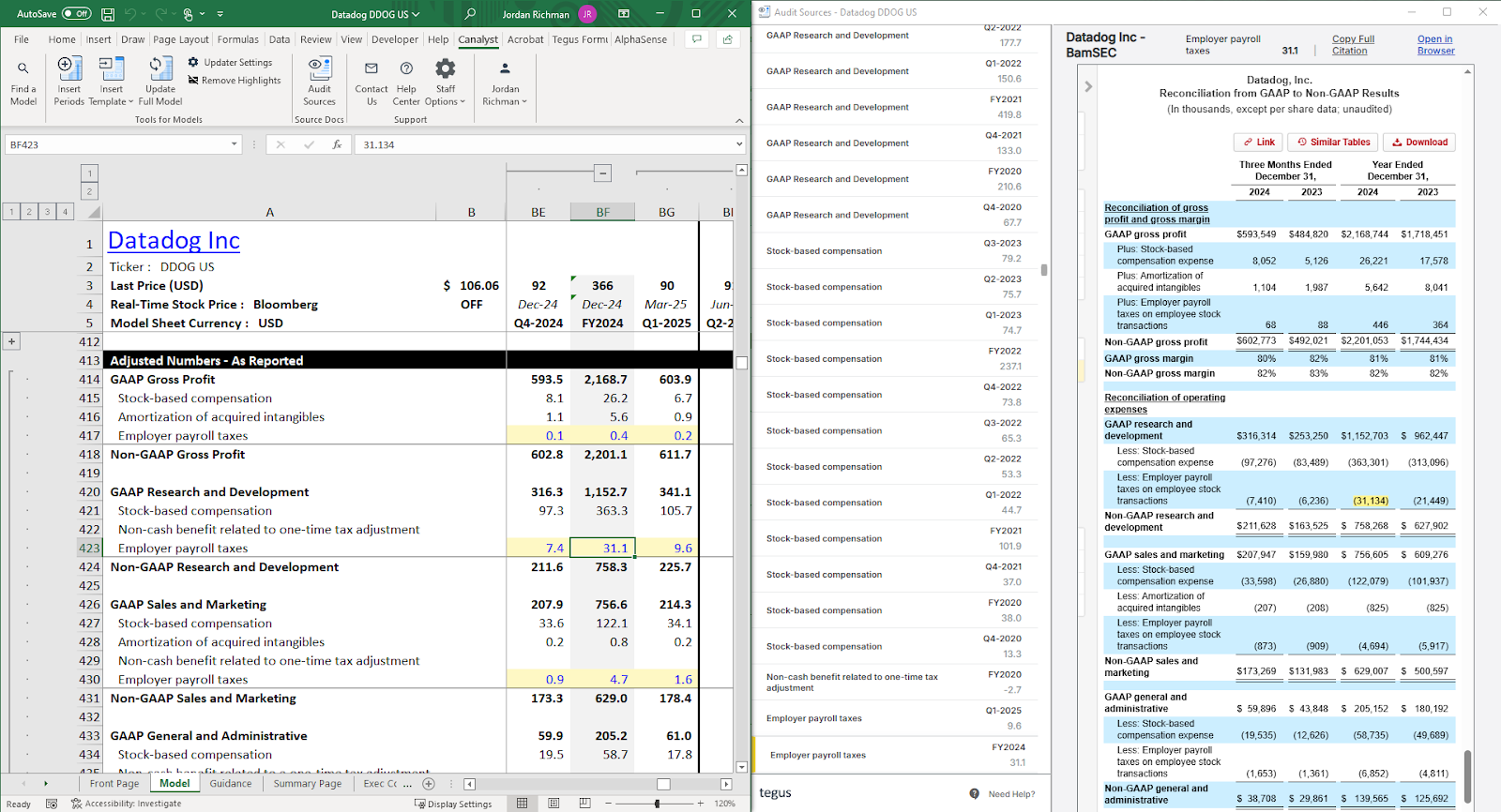 - Redrive the model by changing Canalyst’s formulas