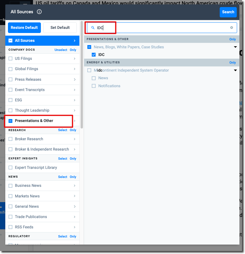 An Overview of the IDC Research content set within AlphaSense